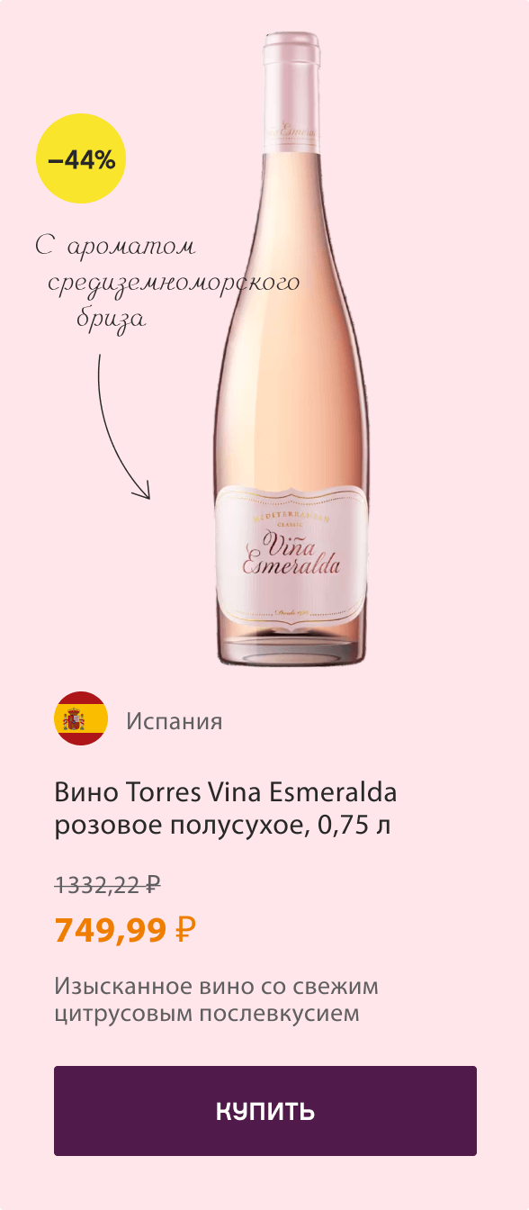 | Вы — розовое вино. Любите мечтать и обожаете приключения. Очаровываете окружающих своей лёгкостью и свежестью как Torres Vina Esmeralda. |