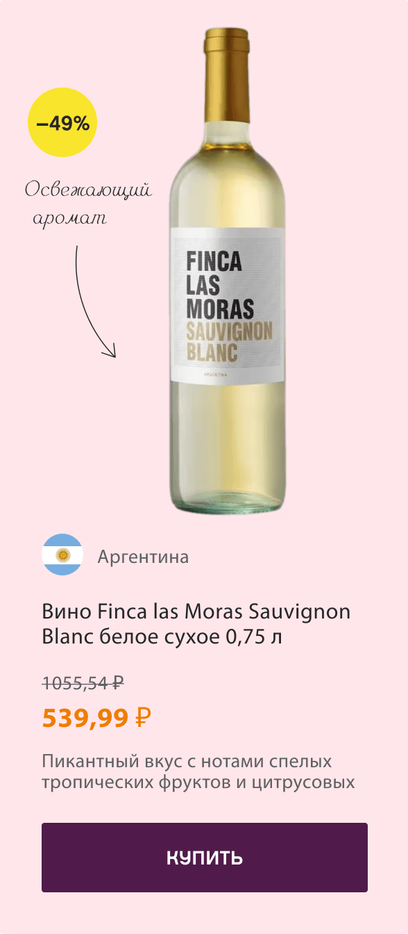 | Вы — белое вино. Стремитесь быть в тренде и любите эксперименты. Всегда готовы открыть для себя что-то новое. Например, Finca las Moras Sauvignon Blanс. |