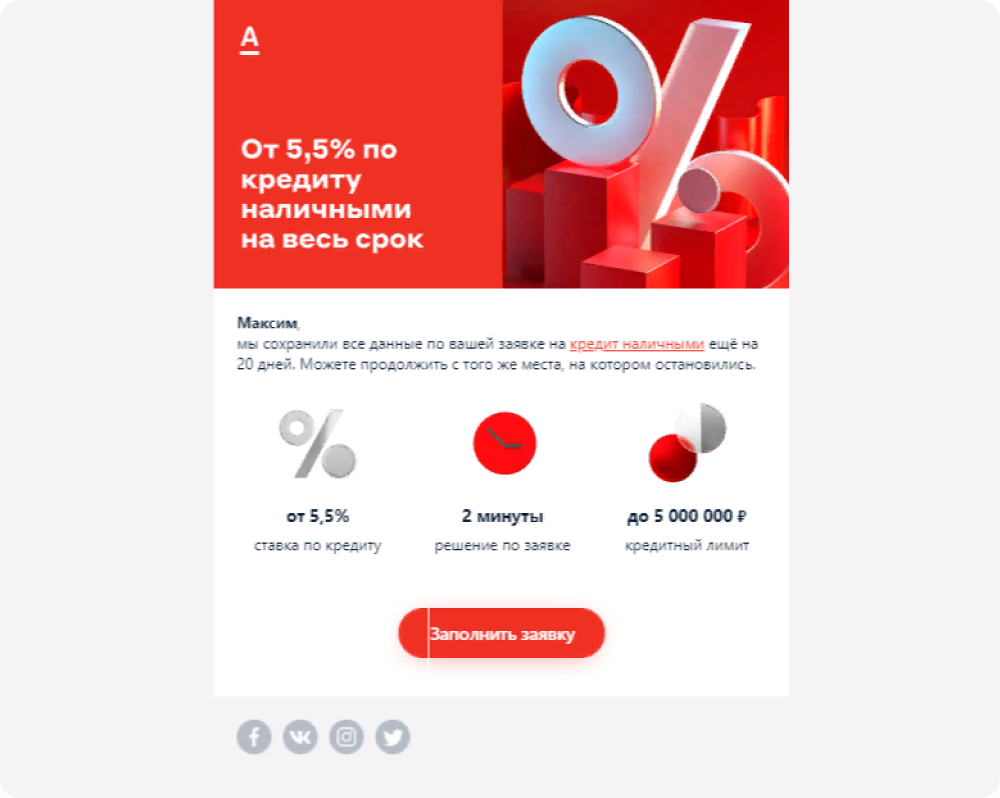 Фирменный стиль в рассылках работает на узнаваемость бренда и позволяет визуально создать единое информационное поле, в котором клиент взаимодействует с компанией. Где бы человек ни получил сообщение — по почте, на сайте, в соцсетях, он всегда чётко понимает, от кого оно.