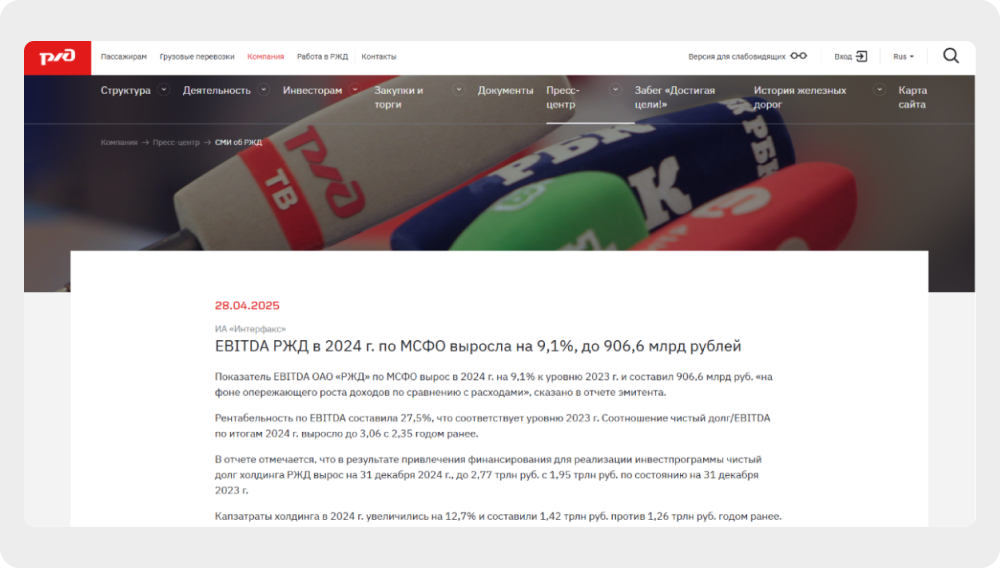 По российским стандартам бухгалтерского учёта (РСБУ) и международным стандартам (МСФО) компании не обязаны раскрывать показатель, а в официальных формах отчётов отдельной строки «EBITDA» нет.