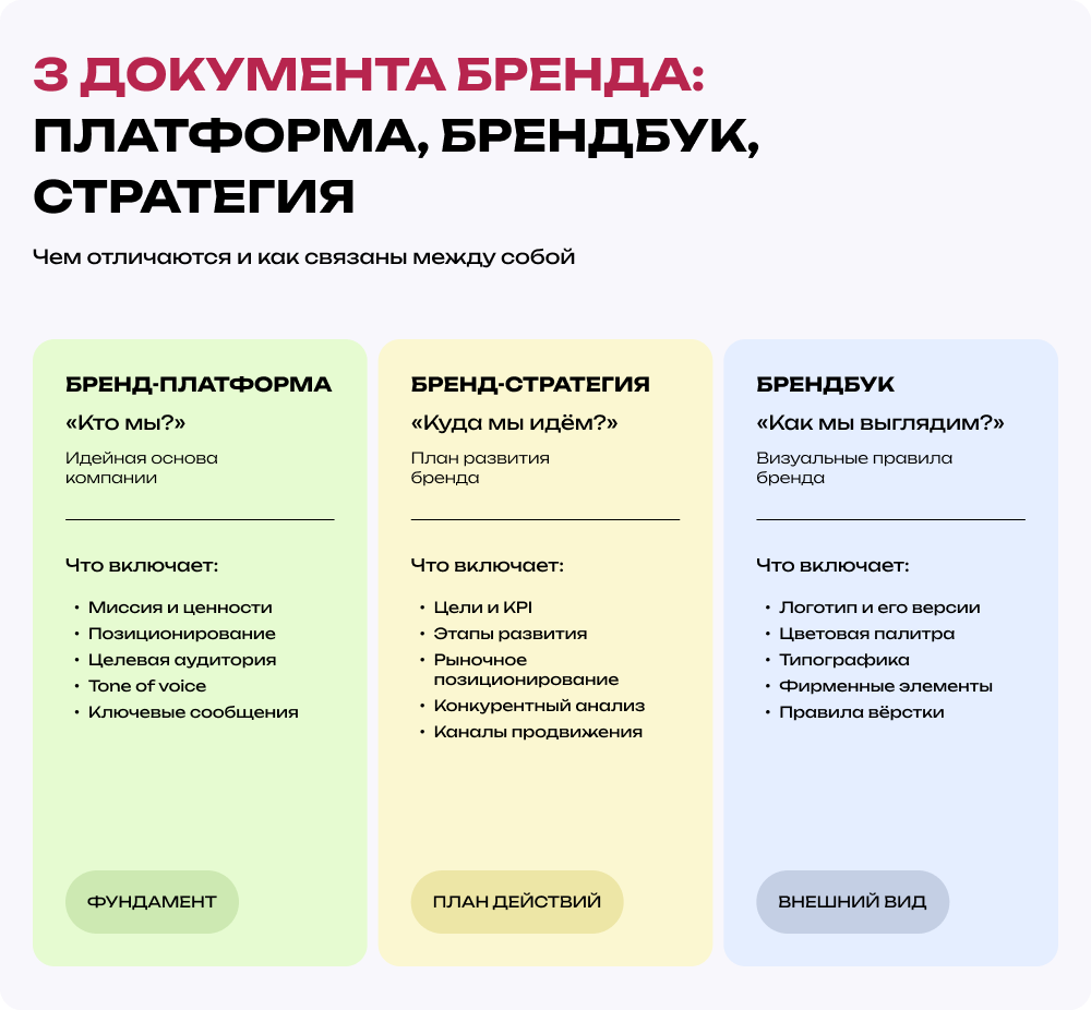 Иногда платформу бренда путают с брендбуком или бренд-стратегией, но это разные инструменты.