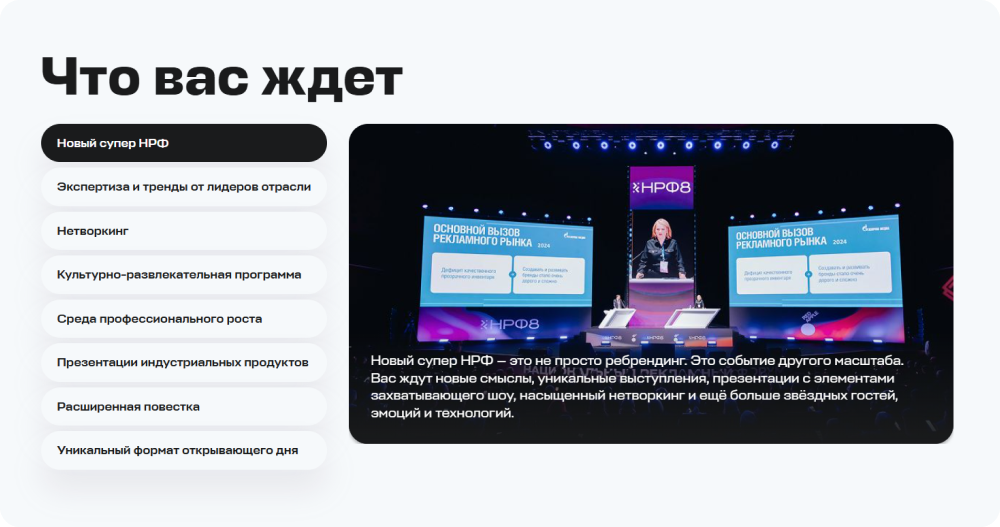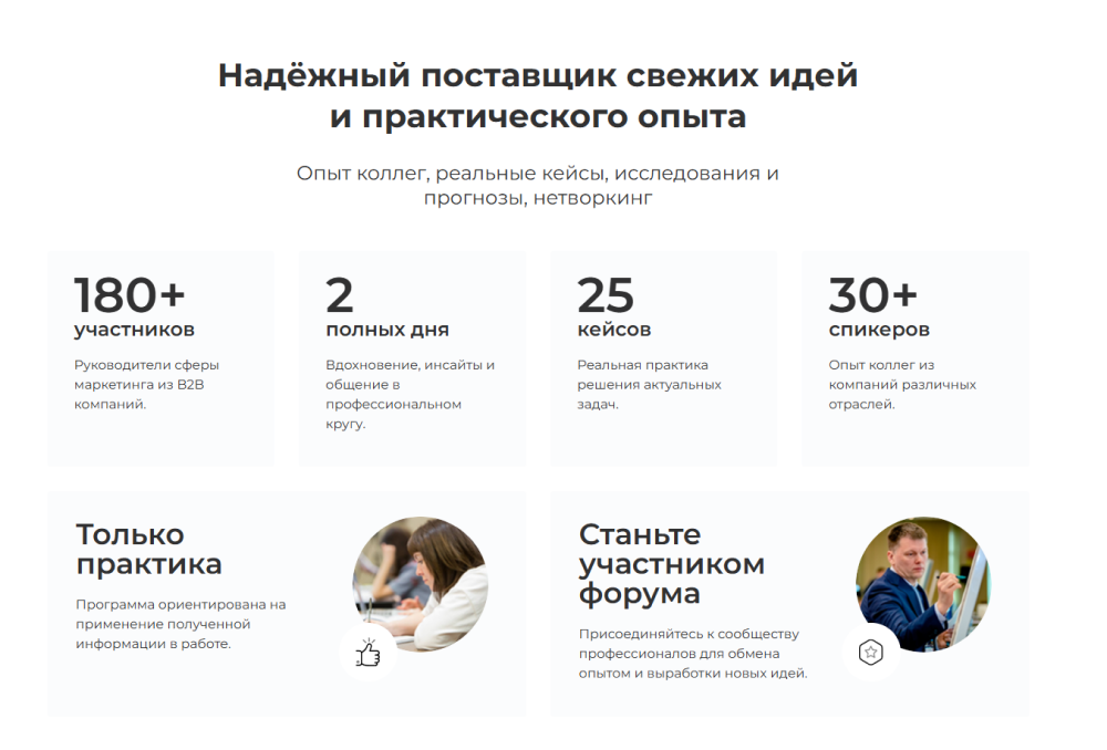 Конференция о маркетинге с фокусом на измеримые результаты. Спикеры-практики оперируют конкретными KPI — количеством обращений, стоимостью лидов, ценой посетителя, а не абстрактными понятиями вроде лояльности и креатива. Участников ждут подробные доклады с обязательными кейсами из личной практики.