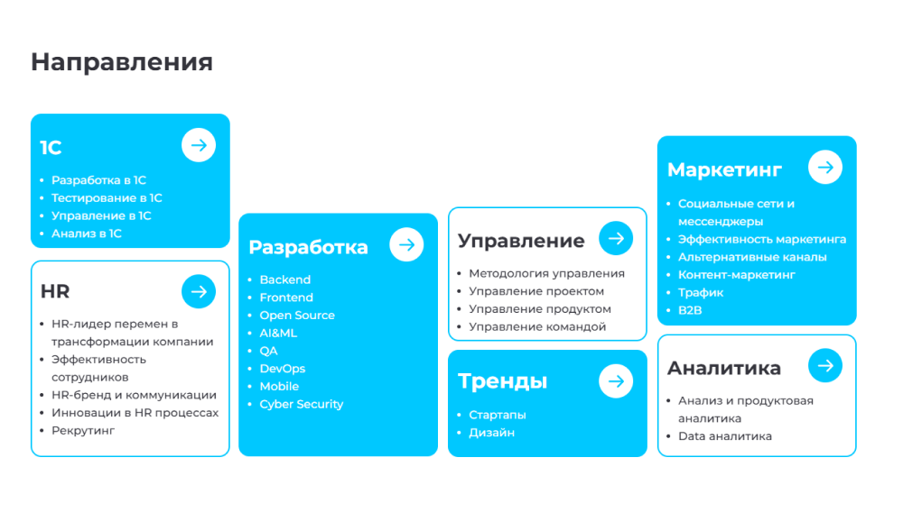 Выбирайте мероприятия под конкретные задачи. Если нужно настроить автоматизацию — идите на GLOBAL TECH FORUM. Ищете новые каналы привлечения — на конференцию по альтернативным площадкам.