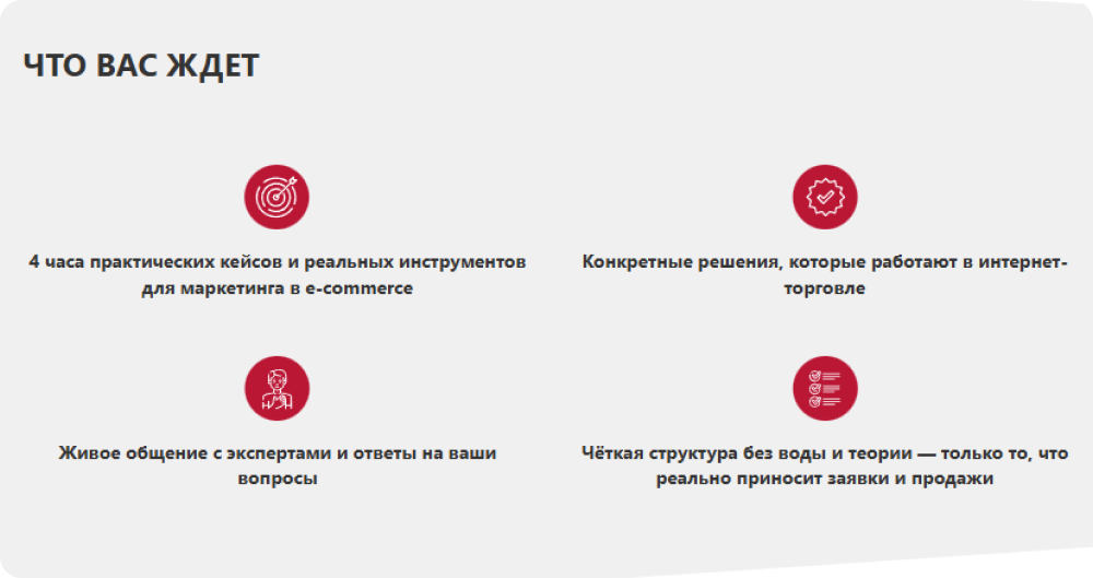 Разбор того, как перестроить маркетинг интернет-магазина в стабильную систему продаж. Темы: SEO, контекст и таргет, управление репутацией, продвижение на маркетплейсах, системный подход к аналитике.