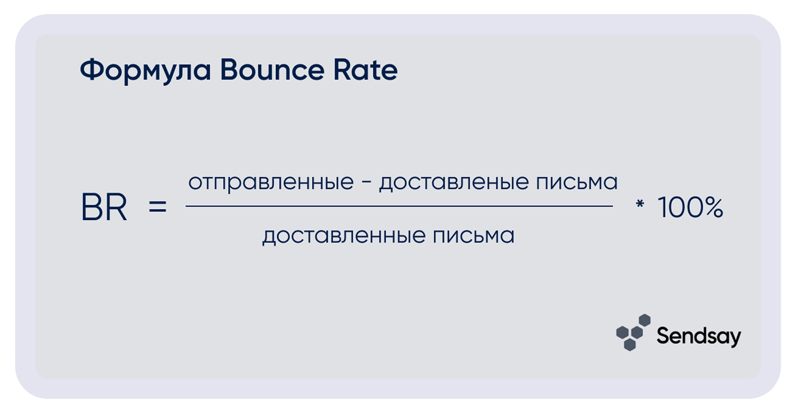 - Bounce Rate в email-рассылках показывает, какой процент писем так и не дошёл до получателей. Это важная метрика здоровья базы и технической инфраструктуры.