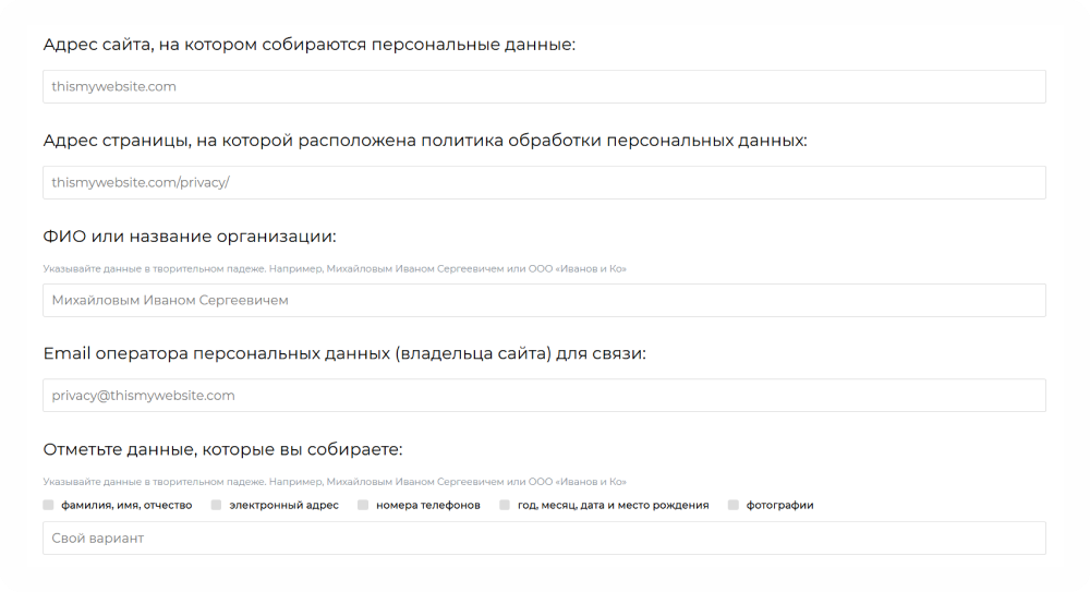 Роскомнадзор рекомендует писать политику простым языком без канцеляризмов. В тексте нужно рассказать: