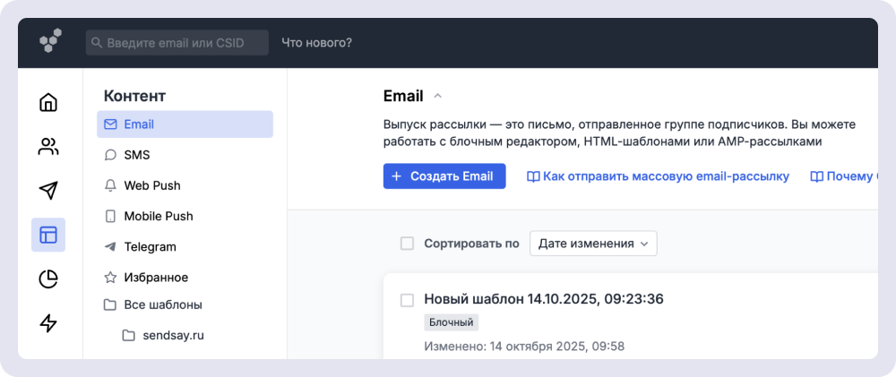 На этом фоне email остаётся стабильным и безопасным каналом коммуникации, не попадающим под запреты и блокировки. В статье расскажем, как за три шага запустить первую электронную рассылку, собрать базу подписчиков через форму и настроить приветственную серию писем — всё это можно сделать в CDP Sendsay.