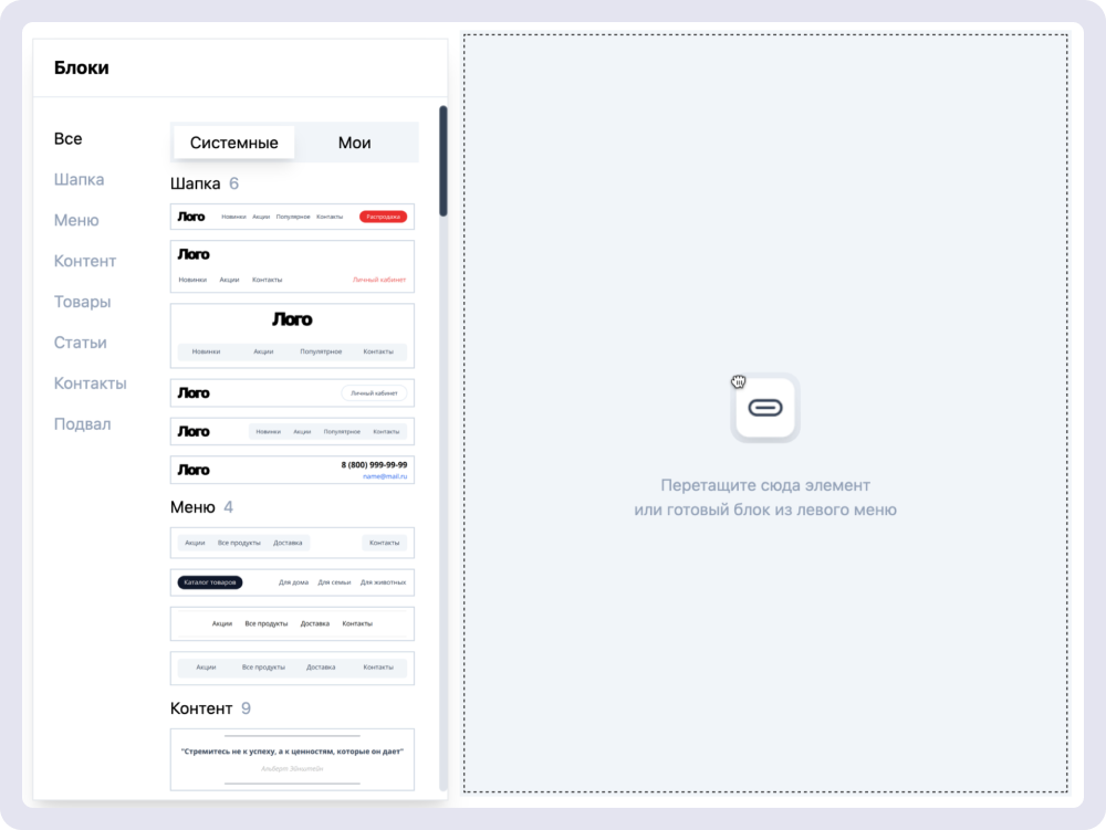 - Добавьте блоки в нужной последовательности и нажмите Сохранить.