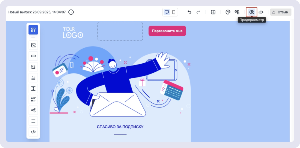 Проверьте в предпросмотре, как будет выглядеть письмо на смартфоне и десктопе. Так, вы убедитесь, что письмо будет таким, каким его задумывали. Сохраните изменения.