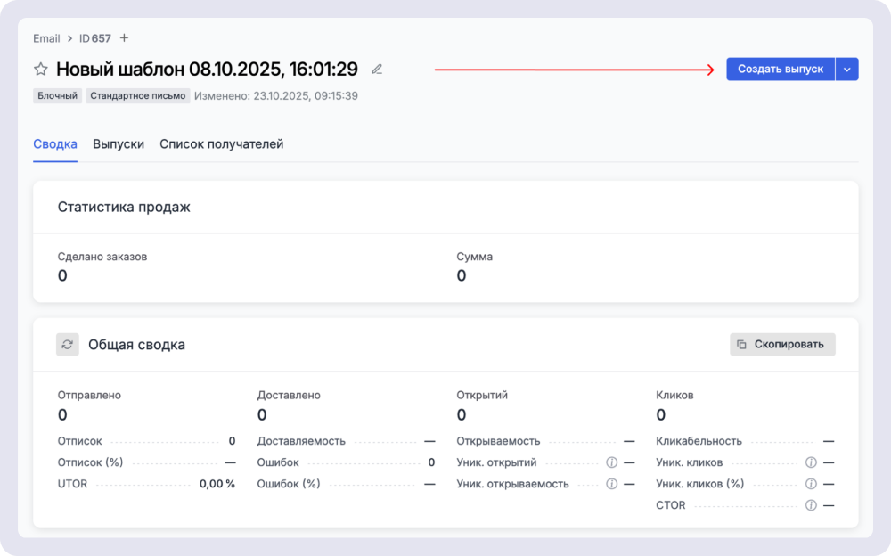 После сохранения шаблона нажмите «Создать выпуск» в правой верхней части экрана: