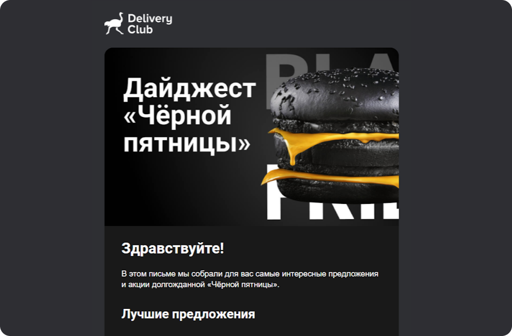 «Чёрная пятница уже тут!», «Распродажа в Чёрную пятницу», «В чёрном-чёрном городе...» — есть ли среди этих тем те, которые могут зацепить? Скорее всего, нет. Они заезжены, не вызывают никакого отклика и не ассоциируются ни с каким конкретным брендом.