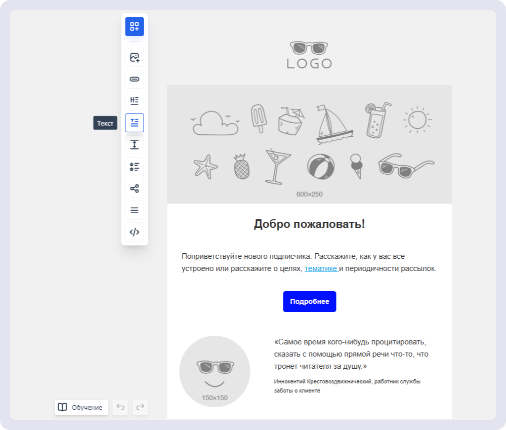Она похожа на создание лендинга в конструкторе. Необходимо только продумать структуру, написать текст и подобрать картинки. Простое адаптивное письмо можно собрать в блочном редакторе сервиса рассылок самостоятельно. Это быстрее и дешевле, чем поручить специалистам верстать письмо с нуля.